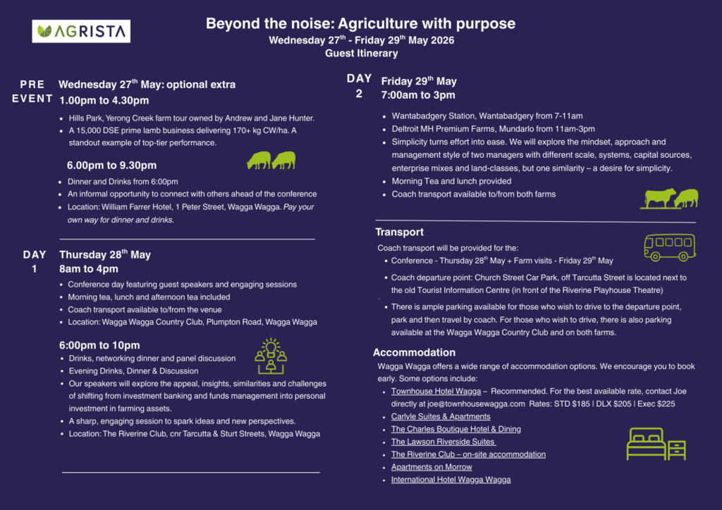 Eligibility: To maintain data‑driven insights, this event is open only to producers who submit benchmarking data with Agrista.